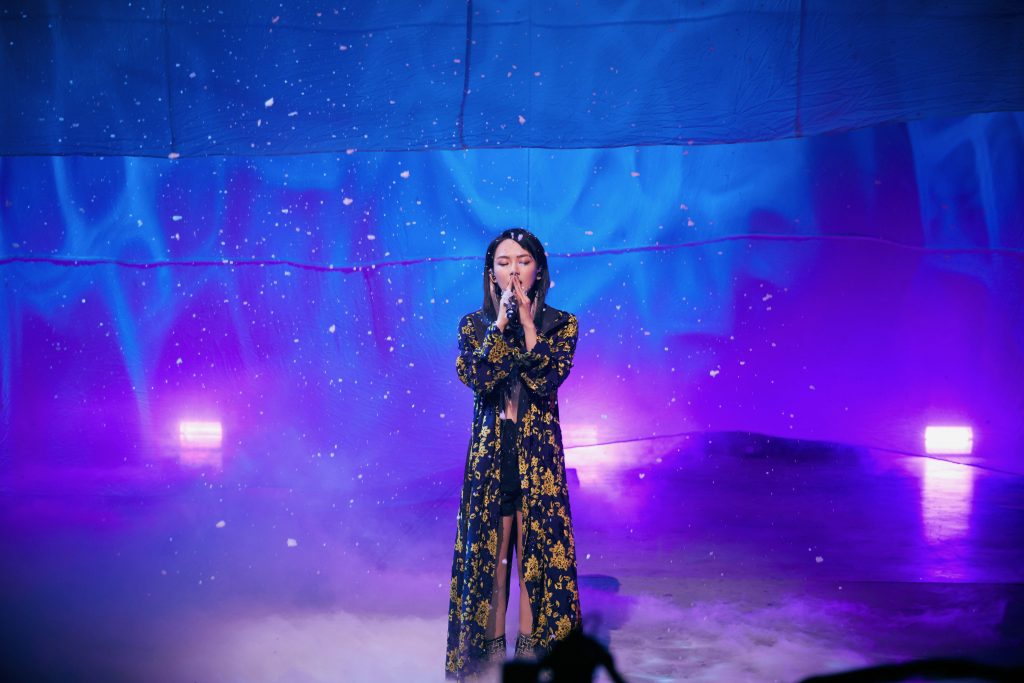 结尾登场的彩蛋歌曲《沉香》,是陈梓童继2017年备受好评的国风单曲《观音阁》后,又一国风力作,依然请来老朋友Q.Luv参与制作,讲述了一段唯美却带点悲伤的情感故事。演出时,梓童身穿藏蓝色刺绣外套置身白色纱幕中,从空中飘落的细细白雪搭配梓童细腻深情的演唱,将现场氛围与歌曲意境完美融合。副歌部分中“nanana”的轻声吟唱,久久萦绕在耳畔,使人印象深刻。一直以来国风音乐都是陈梓童希望尝试突破的领域,而这首《沉香》就是她正在仔细打磨中的作品。因为疫情的关系长时间没有带着歌曲的表演舞台与大家见面,梓童特别选择在TMElive新现场为大家提前表演这首歌,一是为了回馈一直等待自己的乐迷朋友们,给大家带来惊喜。同时也希望借由一首全新的国风音乐,为刚刚迈入的2021年迎来崭新的开始。未来这首《沉香》会以更饱满的面貌与大家见面,也请大家多多期待。